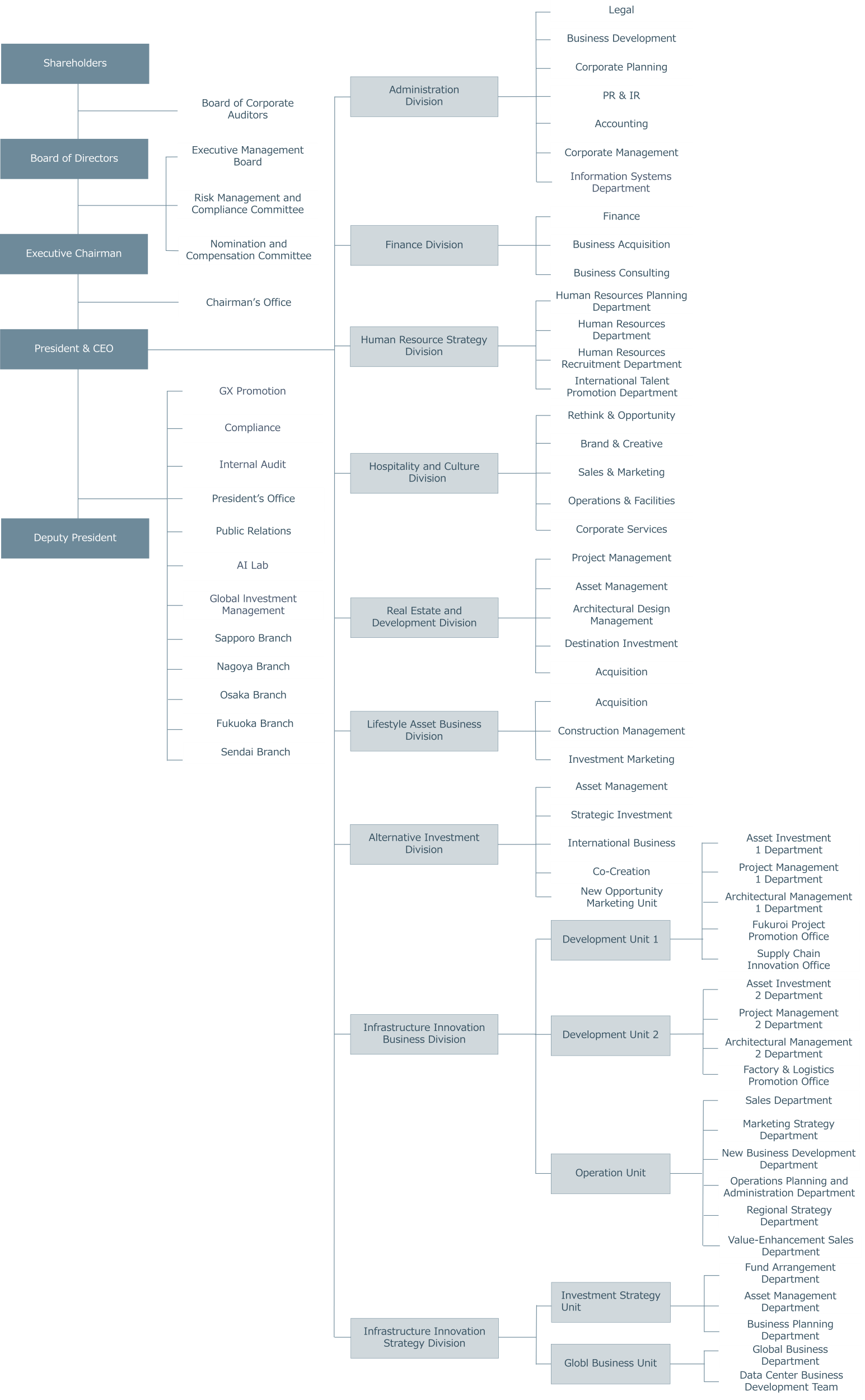 Began his career in the real estate industry, working on corporate planning, equity/corporate finance and similar fields. Later, he gained extensive experience in the investment fund industry, including investment management and financing arrangements for mezzanine bond investment funds, real estate investment funds and hedge funds. He joined the Company in 2017 and was assigned to the Hospitality and Culture Division where he has led the hotel business in laying the groundwork for our hotels designed for groups. He was appointed as a director in 2018 and a director and Deputy President in 2025.